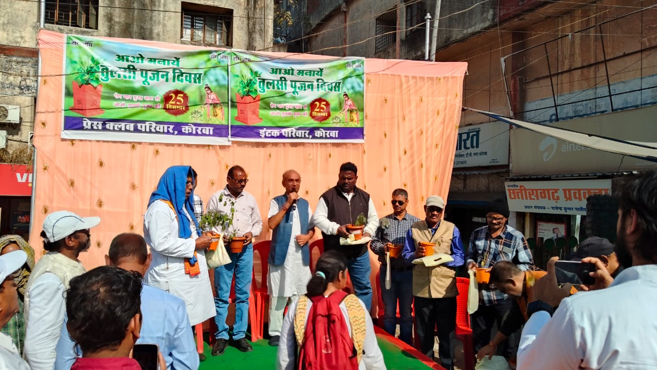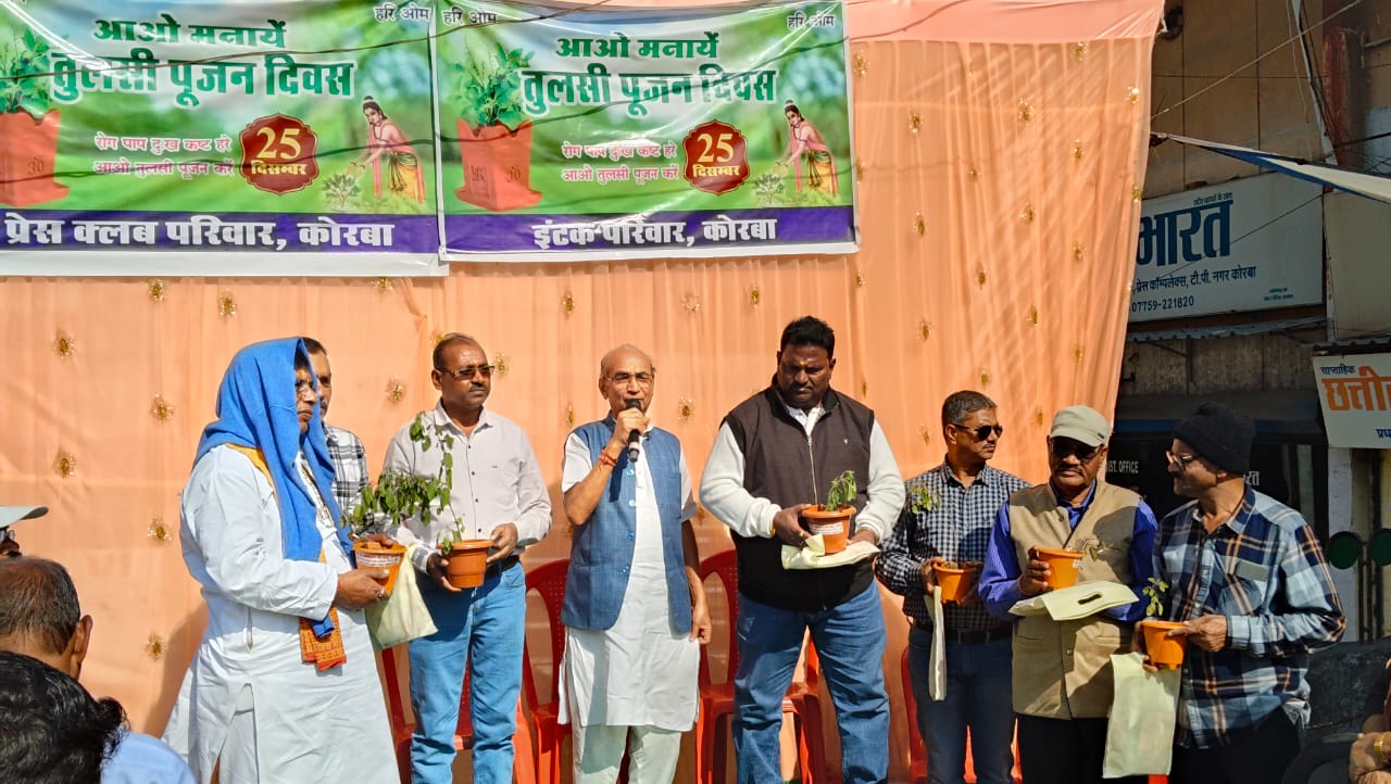 कोरबा। श्री योग वेदांत सेवा समिति, कोरबा के तत्वावधान में प्रतिवर्षानुसार इस वर्ष भी 25 दिसंबर को ‘तुलसी पूजन दिवस’ समारोह भव्यता के साथ मनाया गया। सप्तदेव मंदिर, सीतामढ़ी रोड में आयोजित इस कार्यक्रम में भक्ति और सेवा का अनूठा संगम देखने को मिला।