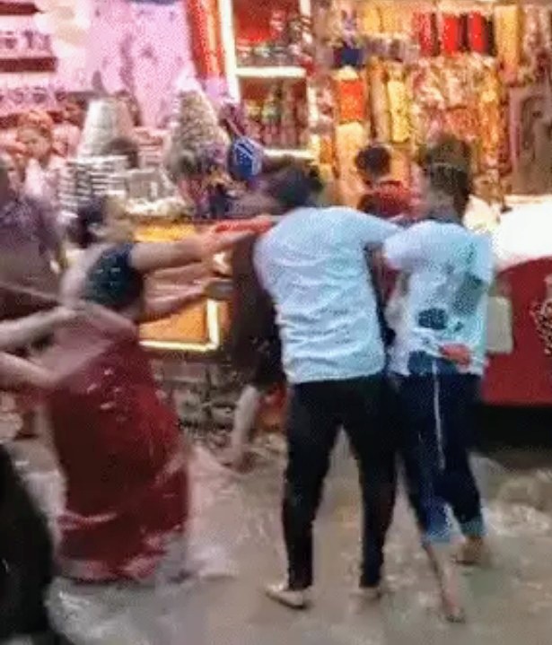 जहाँ दर्शन करने आए श्रद्धालुओं को स्थानीय दुकानदार और उसके कर्मचारियों ने बेरहमी से पीटा। इस घटना का एक वीडियो सोशल मीडिया पर तेजी से वायरल हो रहा है, जिसमें साफ देखा जा सकता है कि कैसे लाठी-डंडों से लैस दुकानदार श्रद्धालुओं पर हमला कर रहे हैं। इस विवाद की वजह बारिश से बचने के लिए दुकान में घुसना बताया जा रहा है।