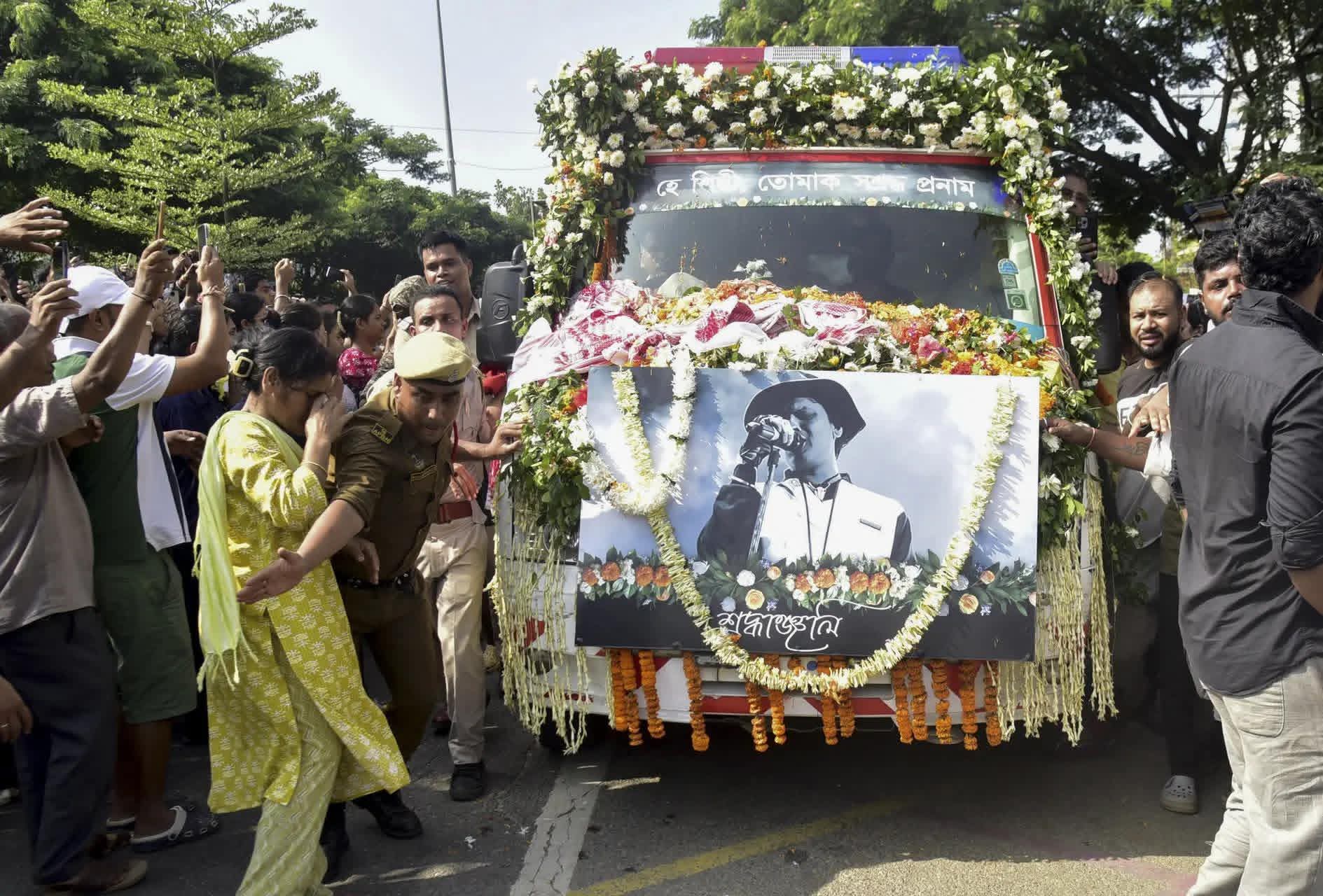 पार्थिव शरीर को पहले सरुसजाई स्टेडियम ले जाया गया, जहां सुबह से ही हजारों प्रशंसक इंतजार कर रहे थे। यहां लोग अंतिम दर्शन के लिए लाइन में लगे रहे। स्टेडियम में उनके गाने बज रहे थे, और भीड़ ने सामूहिक रूप से श्रद्धांजलि दी। इसके बाद शरीर को उनके आवास ले जाया गया, जहां परिवार ने करीब डेढ़ घंटे तक अंतिम विदाई ली। अंतिम संस्कार काहिलीपारा में ही संपन्न हुआ।