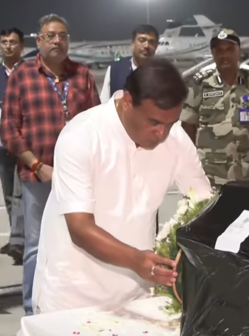 गुवाहाटी एयरपोर्ट पर जुबिन के पार्थिव शरीर को उतारते ही उनकी पत्नी गरिमा सैकिया गर्ग फूट-फूटकर रो पड़ीं। उन्होंने पारंपरिक असमिया गमोछा और फूलों की माला चढ़ाकर भावुक विदाई दी। असम के मुख्यमंत्री हिमंता बिस्वा सरमा, केंद्रीय मंत्री पबित्रा मार्गरीटा और वरिष्ठ अधिकारी भी मौजूद थे। लेकिन हजारों प्रशंसकों की भारी भीड़ ने एयरपोर्ट पर हंगामा मचा दिया। पुलिस बैरिकेडिंग तोड़कर लोग आगे बढ़े, जिससे धक्कमुक्की हुई। प्रशंसक उनके गाने गा रहे थे और ‘जय जुबिन दा’ के नारे लगा रहे थे।