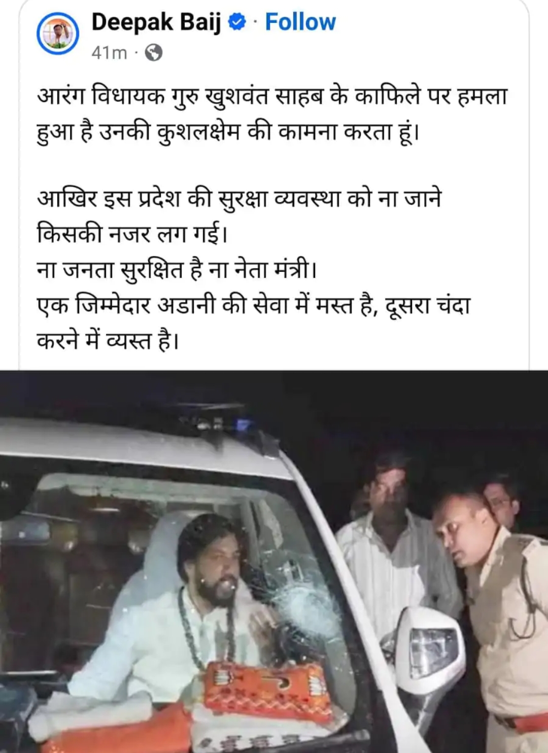 प्रदेश कांग्रेस अध्यक्ष दीपक बैज ने इस घटना को लेकर बीजेपी सरकार पर निशाना साधा और इसे छत्तीसगढ़ में बिगड़ती कानून-व्यवस्था का सबूत बताया। उन्होंने कहा कि बीजेपी शासन में अपराध बढ़ रहे हैं और जनप्रतिनिधियों की सुरक्षा भी खतरे में है। बैज ने सरकार से इस मामले की गहन जांच और दोषियों के खिलाफ सख्त कार्रवाई की मांग की है।