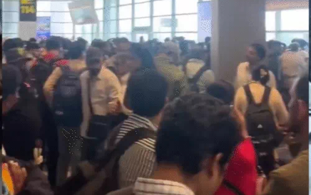 * हैदराबाद एयरपोर्ट पर भी सिस्टम में गड़बड़ी के चलते भारी भीड़ जमा हो गई।